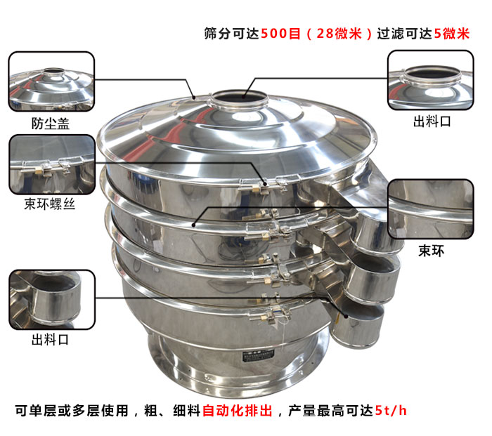 漿液旋振篩是專門針對液體過濾的設(shè)備,大漢漿液旋振篩可以過濾5微米的漿液...